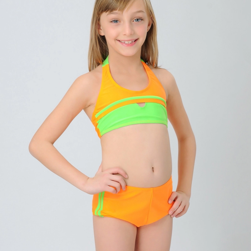 orange patchwork children girl swimwear teen girl swimsuit